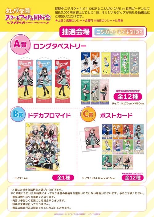 ニジガクトキメキSHOPとニジガクCAFEのお買上げレシ ートで参加できるガラポン抽選会のアイテムにも注⽬!