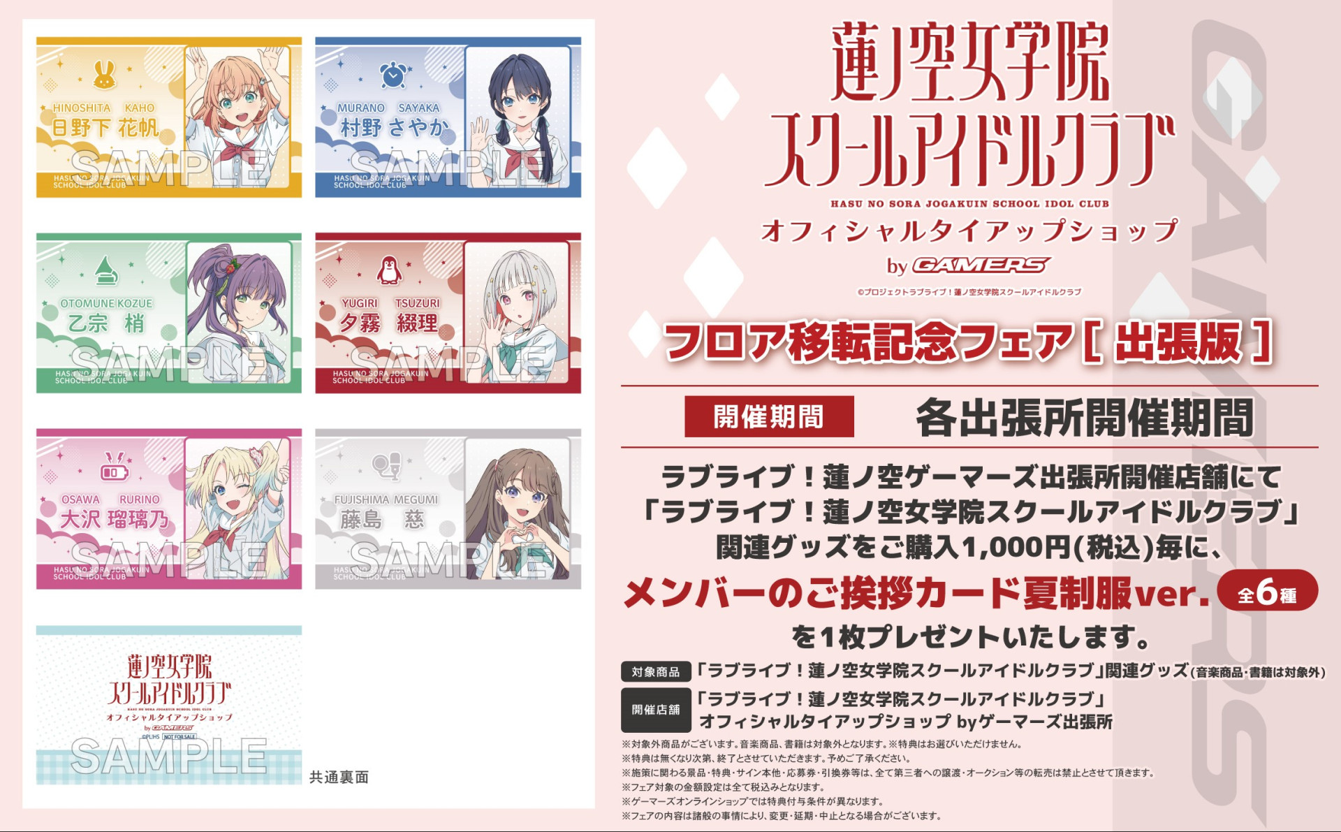 さらに、現在「ラブライブ!蓮ノ空女学院スクールアイドルクラブ」オフィシャルタイアップショップ by ゲーマーズにて開催中のフロア移転記念フェアも出張所にて開催します。