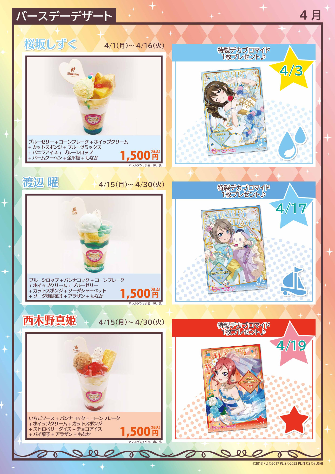 「THEキャラCAFÉ×ラブライブ!スクールアイドルフェスティバル ALL STARS」にて、4月上旬に登場予定のメニューをご紹介!