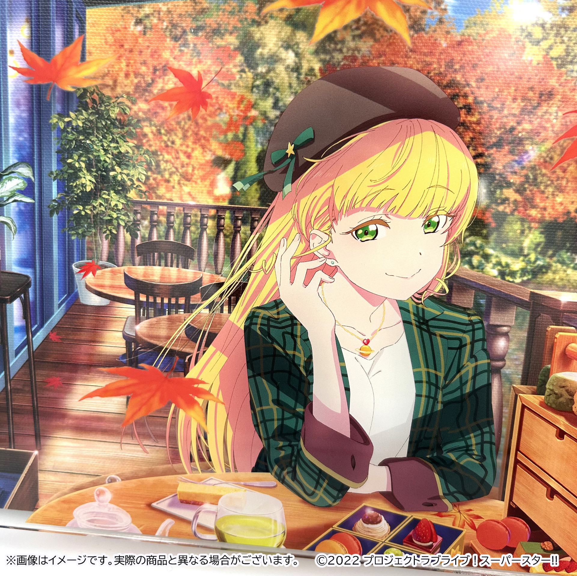 背景、メンバーイラスト、サインをそれぞれ異なるレイヤーで印刷した、立体的に鑑賞可能なアイテムです。