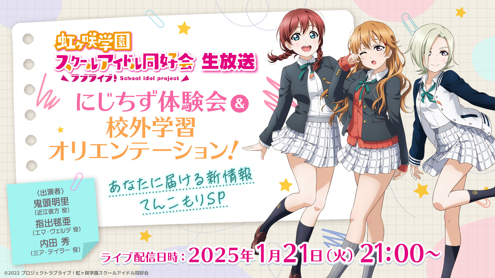 「ラブライブ!虹ヶ咲学園スクールアイドル同好会生放送 “あなた”と一緒に!にじちず♡ときめきレッスン!」のお知らせ!