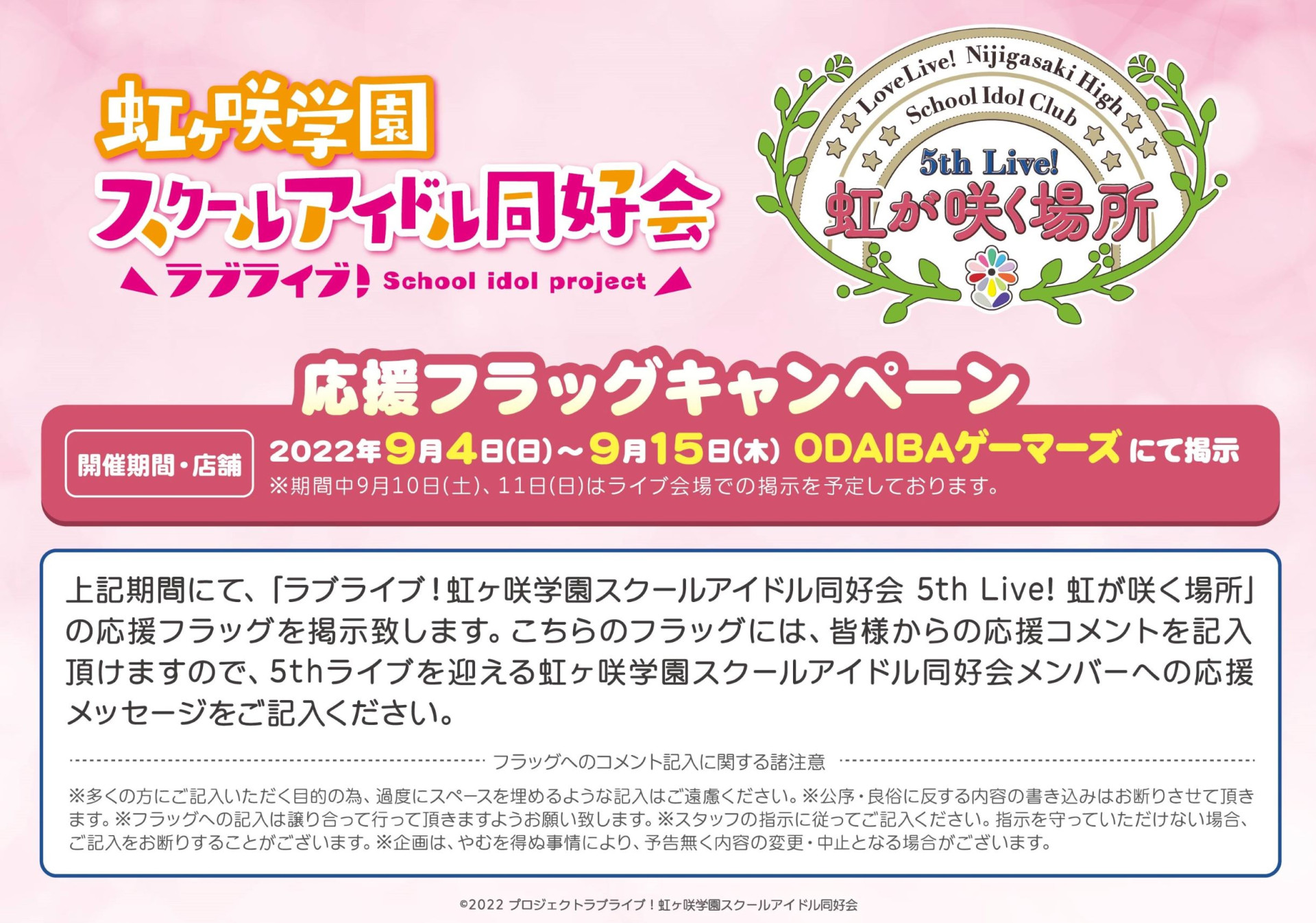 「ラブライブ!虹ヶ咲学園スクールアイドル同好会 5th Live! 虹が咲く場所」応援フラッグキャンペーンのお知らせ