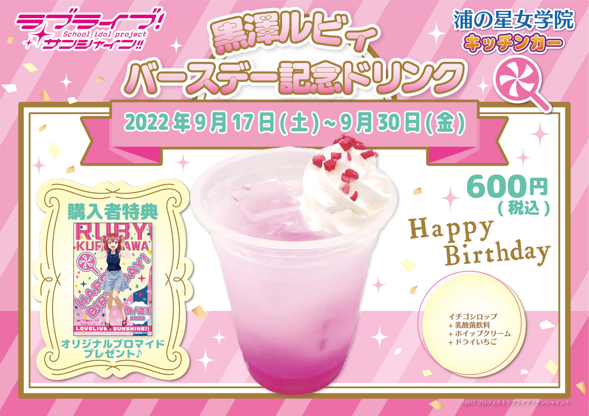 浦の星女学院キッチンカーよりバースデー記念ドリンク販売のお知らせ