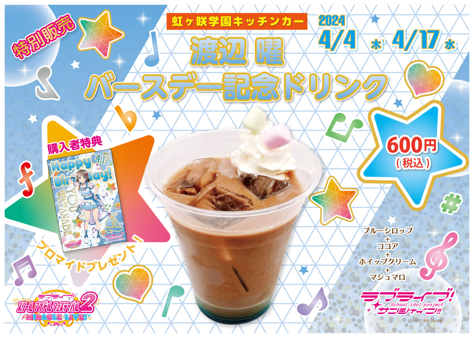 「浦の星女学院キッチンカーよりバースデー記念ドリンク販売のお知らせ」