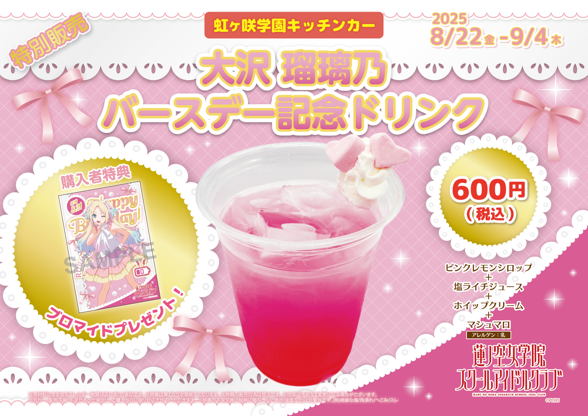 「虹ヶ咲学園キッチンカー」よりバースデー記念ドリンクメニュー販売のお知らせ