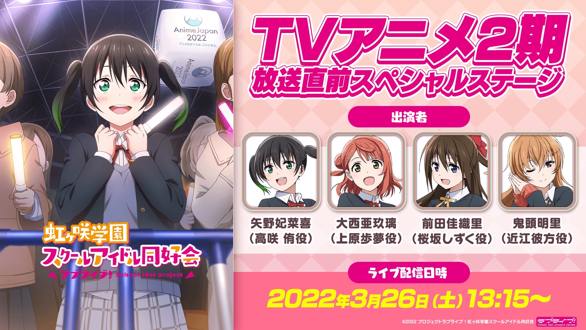 「『ラブライブ!虹ヶ咲学園スクールアイドル同好会』TVアニメ2期放送直前スペシャルステージ~」生配信のお知らせ