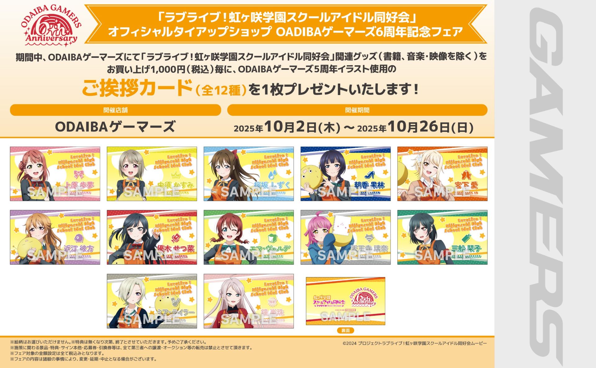 ODAIBAゲーマーズより「ラブライブ!虹ヶ咲学園スクールアイドル同好会」メンバーバースデーお祝いフェア開催のお知らせ