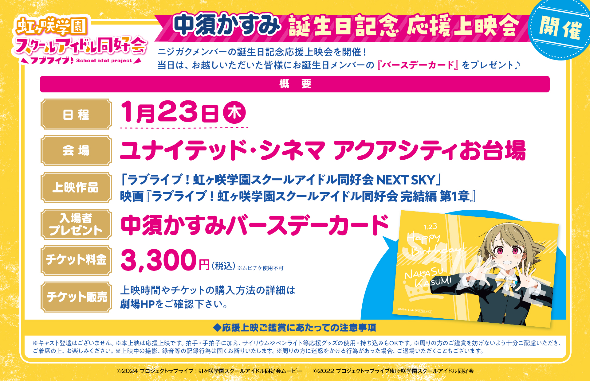 「ラブライブ!虹ヶ咲学園スクールアイドル同好会」中須かすみ誕生日記念応援上映会 開催!