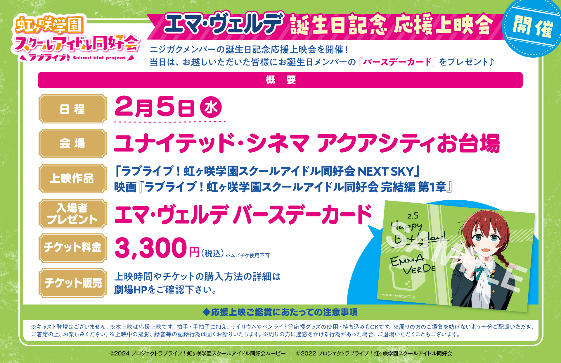 「ラブライブ!虹ヶ咲学園スクールアイドル同好会」 エマ・ヴェルデ、鐘 嵐珠誕生日記念応援上映会 開催!