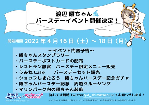 あわしまマリンパークにて、渡辺曜ちゃんバースデーイベント開催!