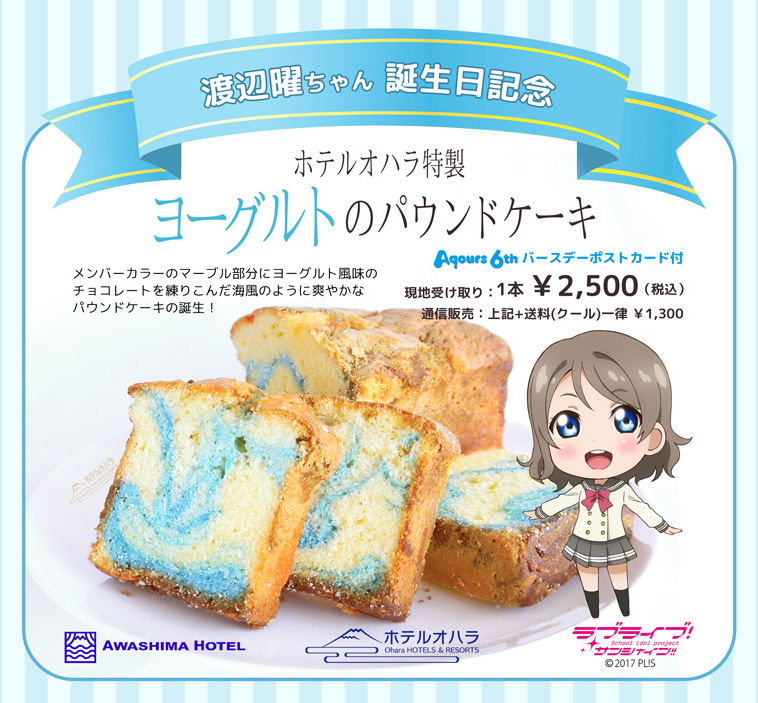 淡島ホテルから渡辺曜ちゃん誕生日記念 『ヨーグルトのパウンドケーキ』販売!